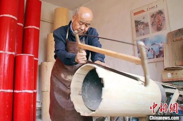 上世紀八十年代初,魏永宏在甘肅省蘭州市皋蘭縣木工班學習木工手藝,畢業(yè)后,他不想放棄木工這門手藝。這時,皋蘭縣各鄉(xiāng)村的太平鼓進入了他的視線,“當時皋蘭沒有人能做太平鼓,只能從上海去訂做”。