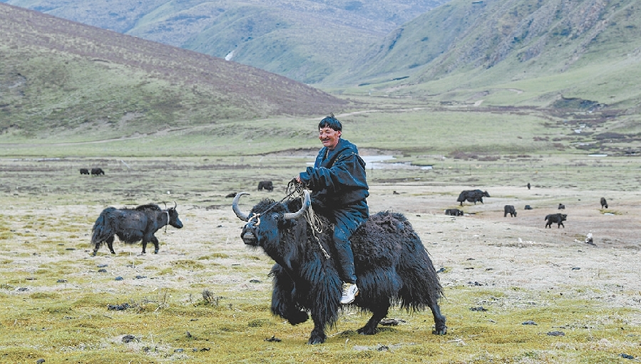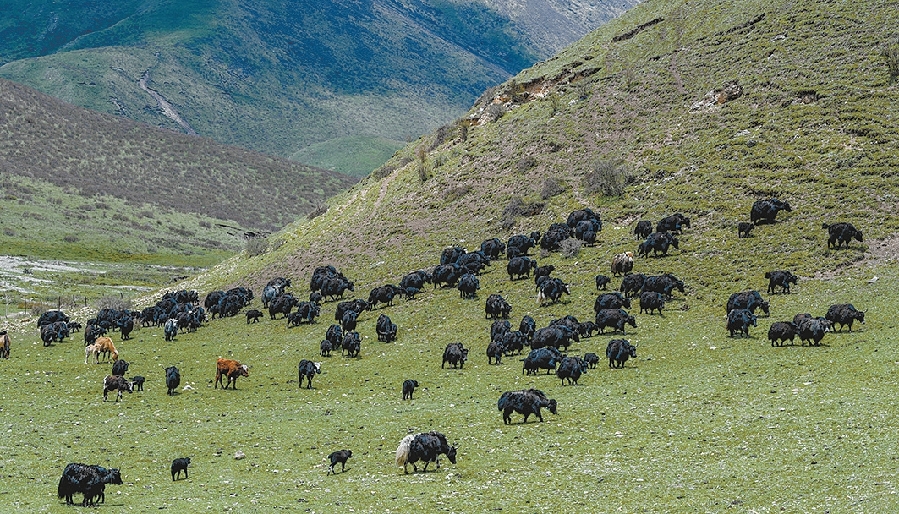 望著遠(yuǎn)處的草山,山間偶爾能看到幾個(gè)黑點(diǎn),洛青知道,那是牦牛。突然,一陣思緒飄上了洛青的心頭——若是不參與村里的生態(tài)畜牧業(yè)合作社,自己或許還過著逐水草而居,與牛羊?yàn)榘榈纳?。哪能如現(xiàn)在這般住進(jìn)縣城,不用風(fēng)吹日曬?