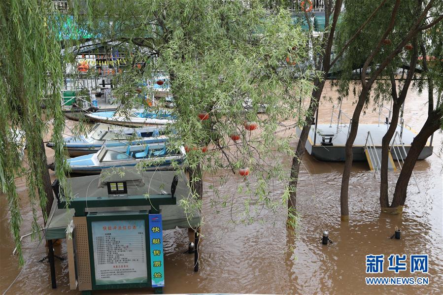 這是蘭州市城關(guān)區(qū)黃河蘭州段岸邊一處被淹的快艇售票處(7月21日攝)。新華社記者馬莎攝