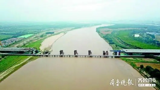 近年來(lái),加速建設(shè)的黃河橋隧工程為濟(jì)南攜河發(fā)展提供了交通便利。圖為正在建設(shè)中的齊魯黃河大橋。