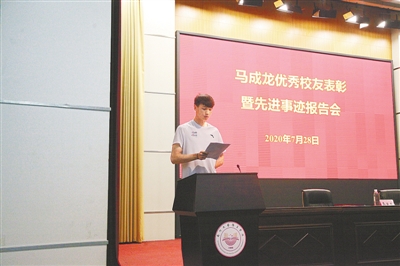 報(bào)告會(huì)上,馬成龍向鄭大體院廣大干部職工及學(xué)生代表講述了黃河激流中英勇救人的先進(jìn)事跡,并和大家分享了個(gè)人的成長(zhǎng)經(jīng)歷以及在鄭大體院學(xué)習(xí)期間學(xué)到的專業(yè)技術(shù)和人生哲理(如圖)。