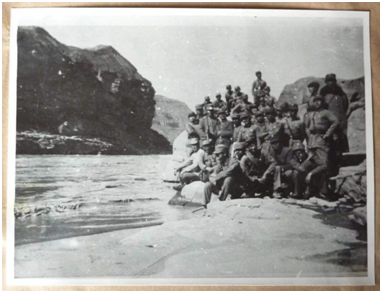 渡黃河之前,隊(duì)員們?cè)谯籴槥┒煽冢粝铝诉@張合影