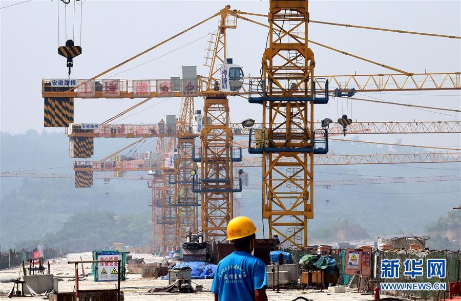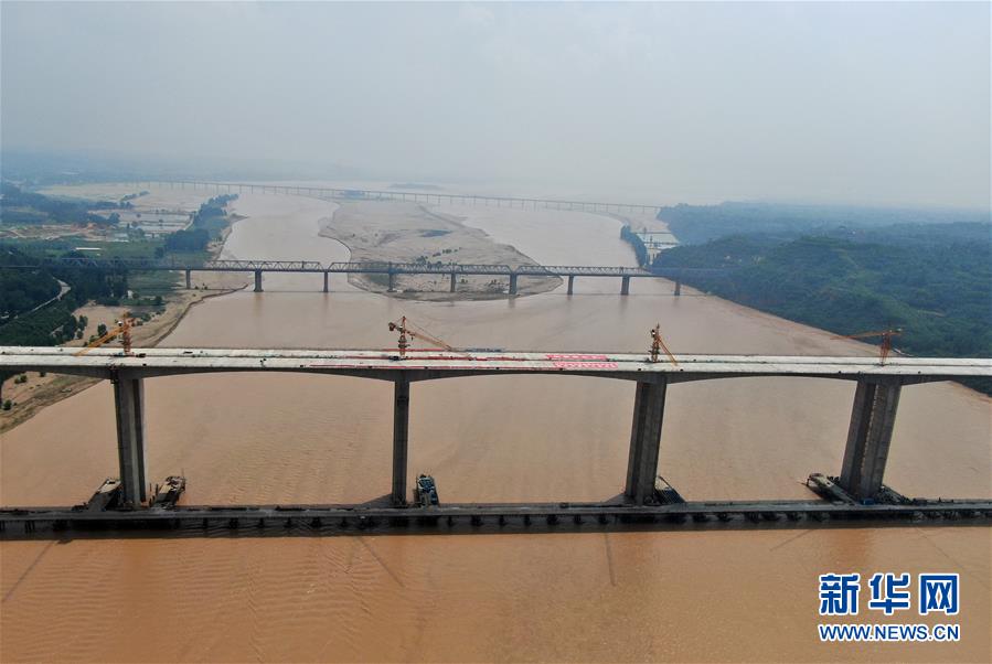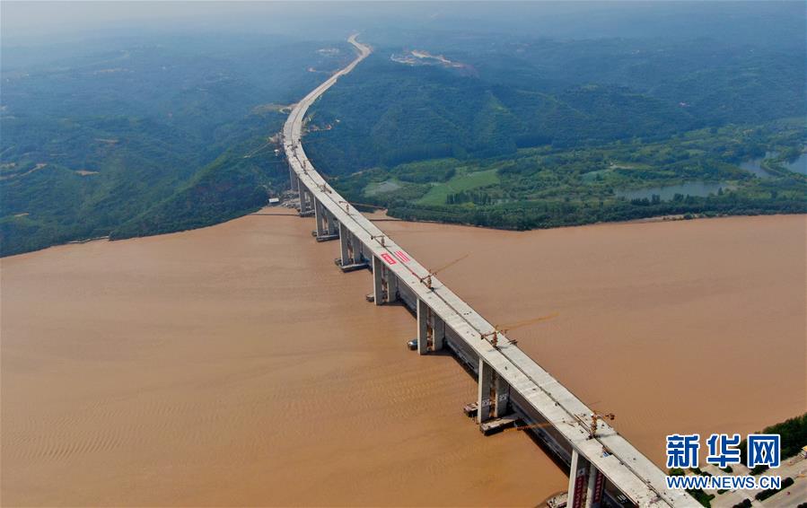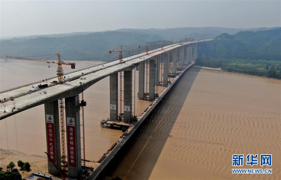 7月30日拍攝的濟(jì)洛西高速黃河特大橋施工現(xiàn)場(chǎng)。日前,河南濟(jì)(濟(jì)源)洛(洛陽)西高速黃河特大橋主體工程完工,進(jìn)入最后的橋面鋪設(shè)和橋梁護(hù)欄建設(shè)階段。濟(jì)洛西高速黃河特大橋是溝通洛陽與濟(jì)源的重要通道,大橋設(shè)計(jì)全長1146.65米,預(yù)計(jì)2020年10月通車。新華社記者朱祥攝