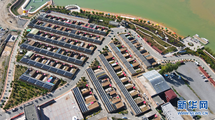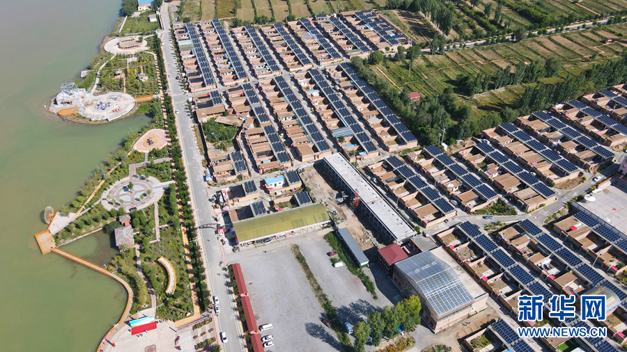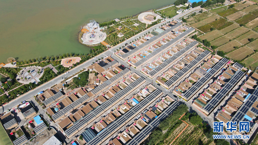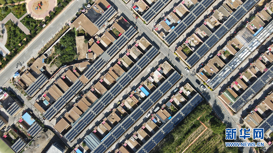 從高處俯瞰,屋頂上一片片光伏發(fā)電板排列整齊。新華網(wǎng)卡婭梅朵攝