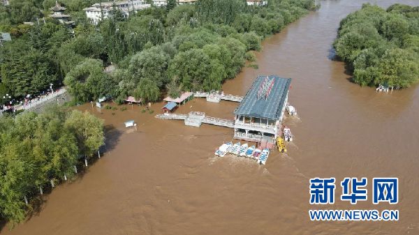 這是8月21日拍攝的部分被淹的蘭州龍?jiān)垂珗@。新華社記者張智敏攝