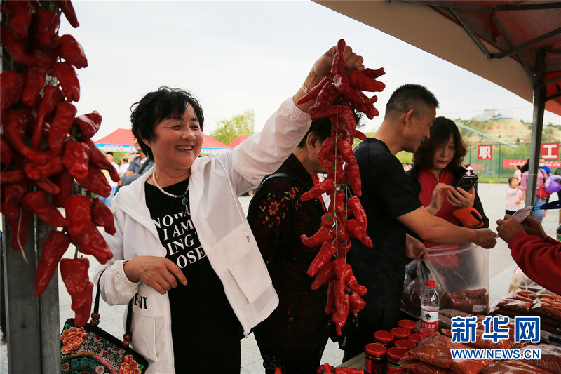 8月29日,游客在活動(dòng)現(xiàn)場(chǎng)購買農(nóng)副產(chǎn)品。新華網(wǎng)發(fā)(馬斌攝)
