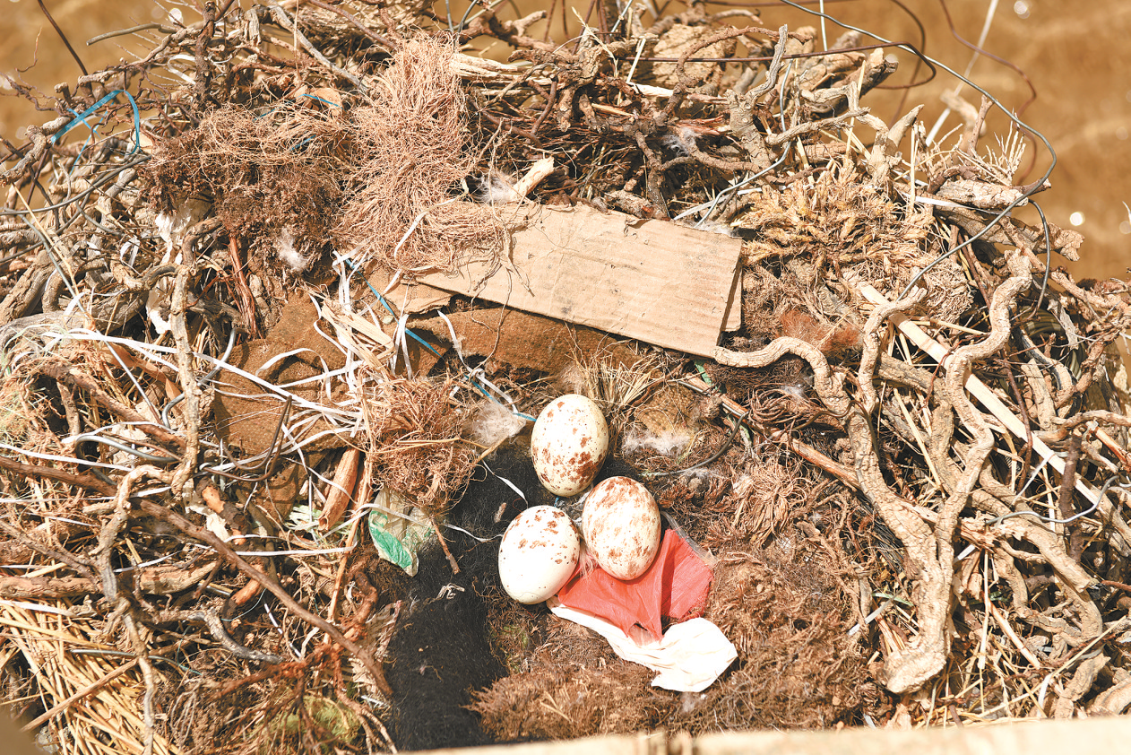 沒走一公里,到了一座橋,加羊多杰又將車叫停,他走到橋欄邊,指著下方橋梁凸出的位置,那里也有一個(gè)鷹巢,鷹不在家,鷹巢里有三個(gè)蛋。鷹巢的底部是鋼筋焊成的框架,這是黃河鄉(xiāng)生態(tài)管護(hù)站專門做的,為防止鷹巢掉到河里,加羊多杰說以前發(fā)生過這樣的事情。