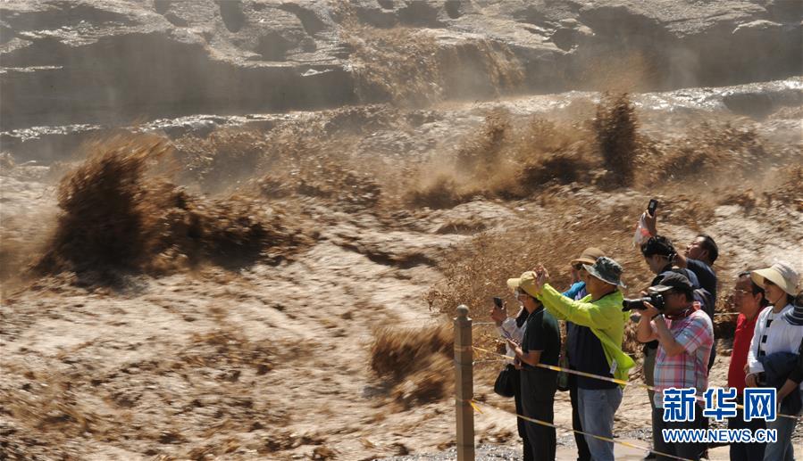 8月26日,游客在黃河壺口瀑布景區(qū)游覽。近日,受上游降雨和水庫(kù)泄洪影響,黃河壺口瀑布水量增大,形成壯美瀑布群,吸引眾多游客觀景賞瀑。新華社記者馬毅敏攝