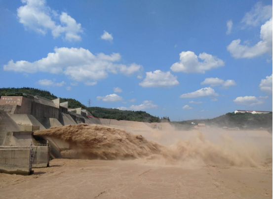8月2日“打卡老家河南·弘揚黃河文化——2020網(wǎng)絡(luò)名人讀中原”活動采風(fēng)團(tuán)來到了洛陽孟津縣的小浪底風(fēng)景區(qū),觀看小浪底調(diào)水調(diào)沙。現(xiàn)在處于調(diào)水調(diào)沙的后期階段,放沙階段。水流夾雜著泥沙,從排沙洞噴涌而出,激起層層巨浪,十分壯觀。目之所及,黃河水面翻滾,洶涌澎湃。