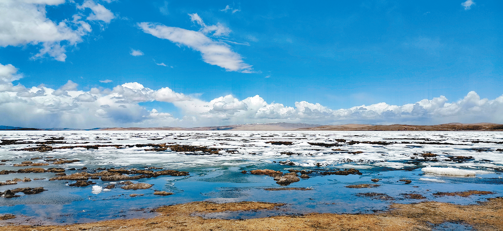 冰雪還未完全消融的日格措。