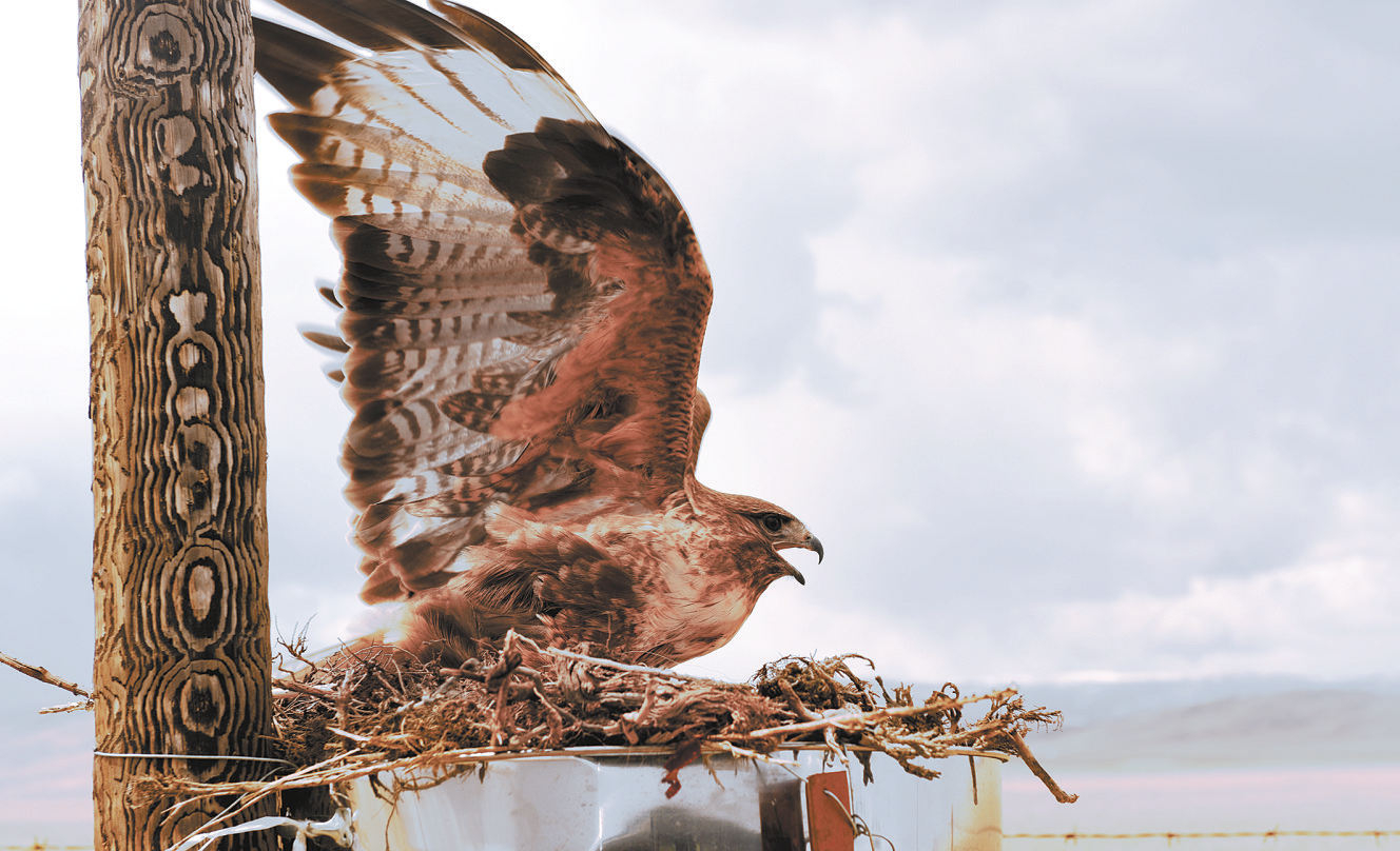 我搖下車(chē)窗,看到一根豎著的桿子,桿子的中間是一個(gè)鷹巢,一只鷹緊緊地盯著我,而我和鷹的距離就一米多。我是第一次如此近距離看草原上的鷹,它的眼睛犀利有神,和在動(dòng)物園或者籠子里看到的鷹有天壤之別,以至于看得出神忘記了拍照。當(dāng)我舉起相機(jī)準(zhǔn)備拍照時(shí),它已展開(kāi)翅膀飛走了。