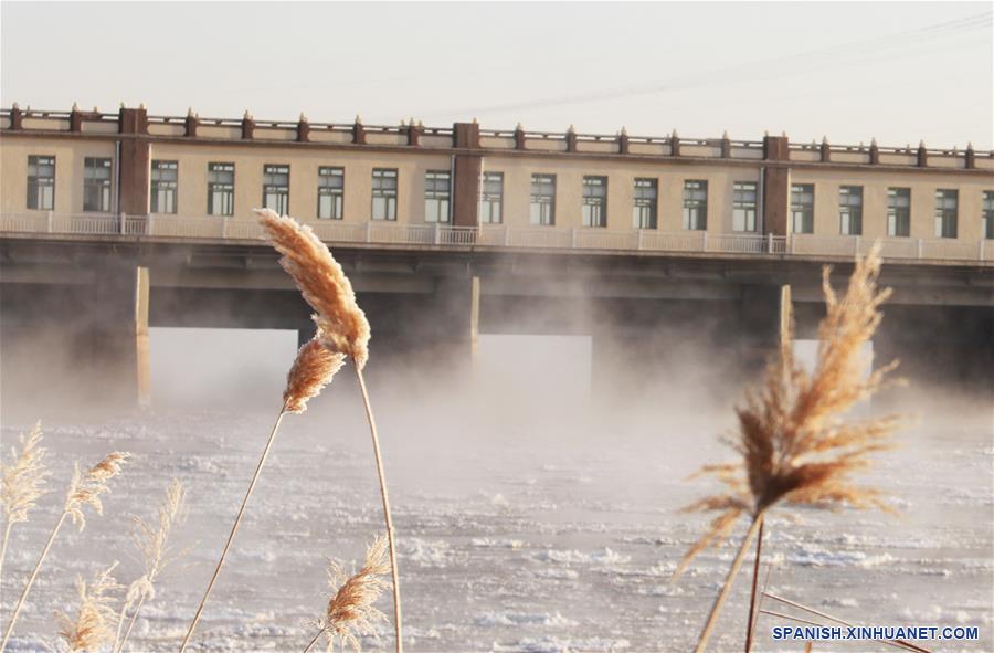 Imagen del 1 de enero de 2020 del río Amarillo cubierto de niebla en la sección cercana al Proyecto de Control de Agua de Sanshenggong, en la región autónoma de Mongolia Interior, en el norte de China. La niebla se forma cuando el vapor de agua se condensa en peque?as gotas al encontrarse con el aire frío.
