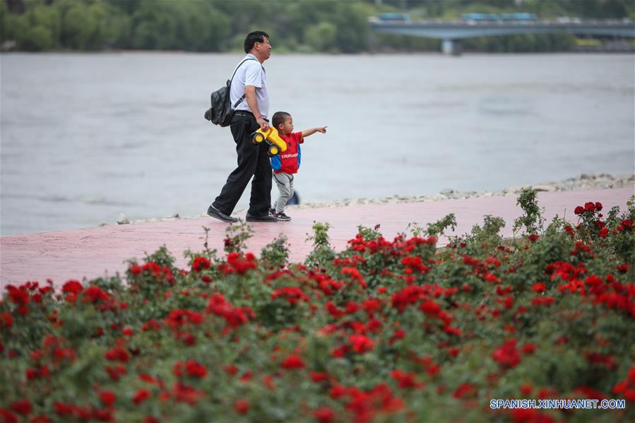 Personas caminan por un sendero a lo largo del río Amarillo en Lanzhou, en la provincia de Gansu, en el noroeste de China, el 11 de junio de 2020. Se espera que el proyecto del sendero que se encuentra en construcción se ponga en funcionamiento a principios de julio de este a?o. El sendero, con una longitud de 20 kilómetros, conectará los parques y áreas escénicas a lo largo del río Amarillo en Lanzhou.