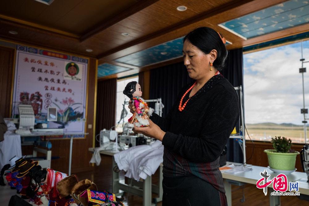 白河社區(qū)社員手拿吉祥娃娃 中國網(wǎng)記者 鄭亮攝
