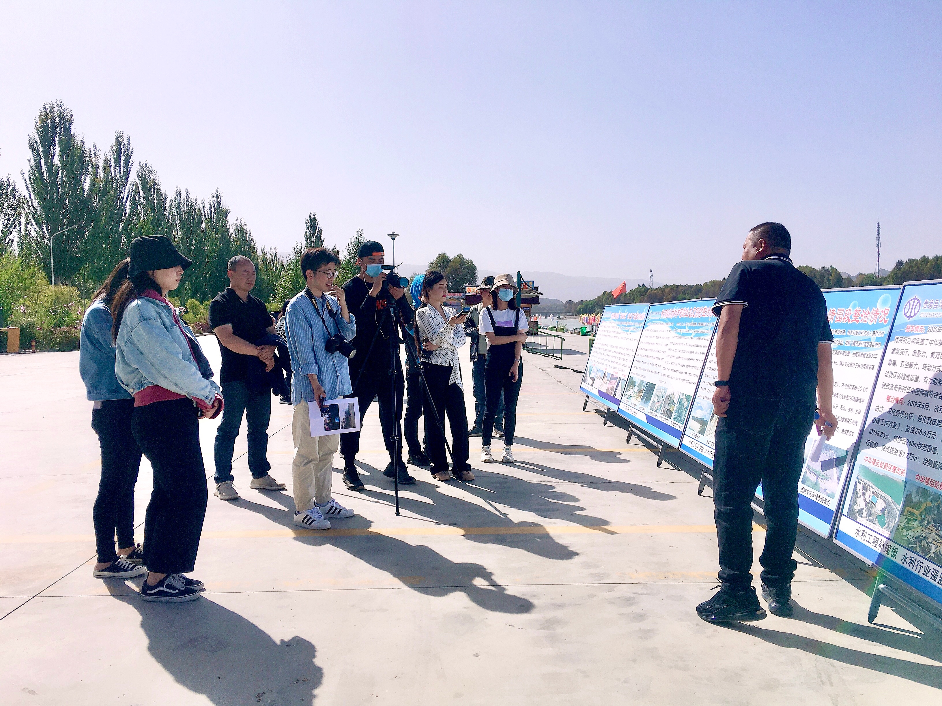 “中國夢·黃河情——黃河流域生態(tài)保護和高質量發(fā)展”網(wǎng)絡主題活動采訪團聽貴德縣水利局水利綜合行政執(zhí)法大隊隊長劉斌講解“清四亂”。