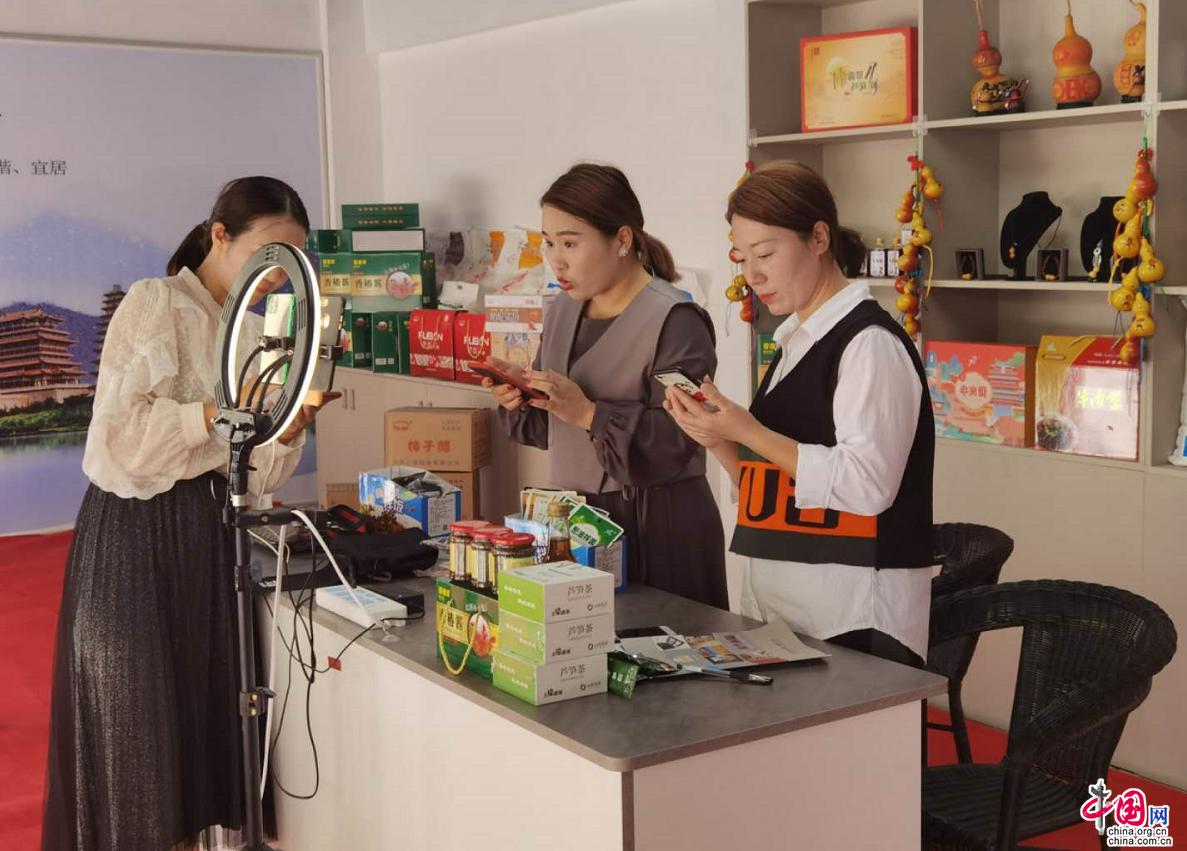 圖為農(nóng)家正在直播售賣農(nóng)產(chǎn)品。中國網(wǎng) 江虹霖/攝