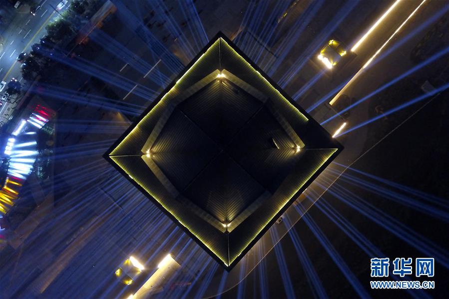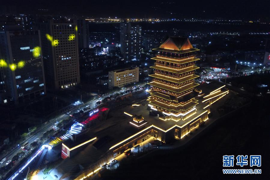這是9月29日拍攝的蘭州黃河樓夜景(無(wú)人機(jī)照片)。新華社記者范培珅攝