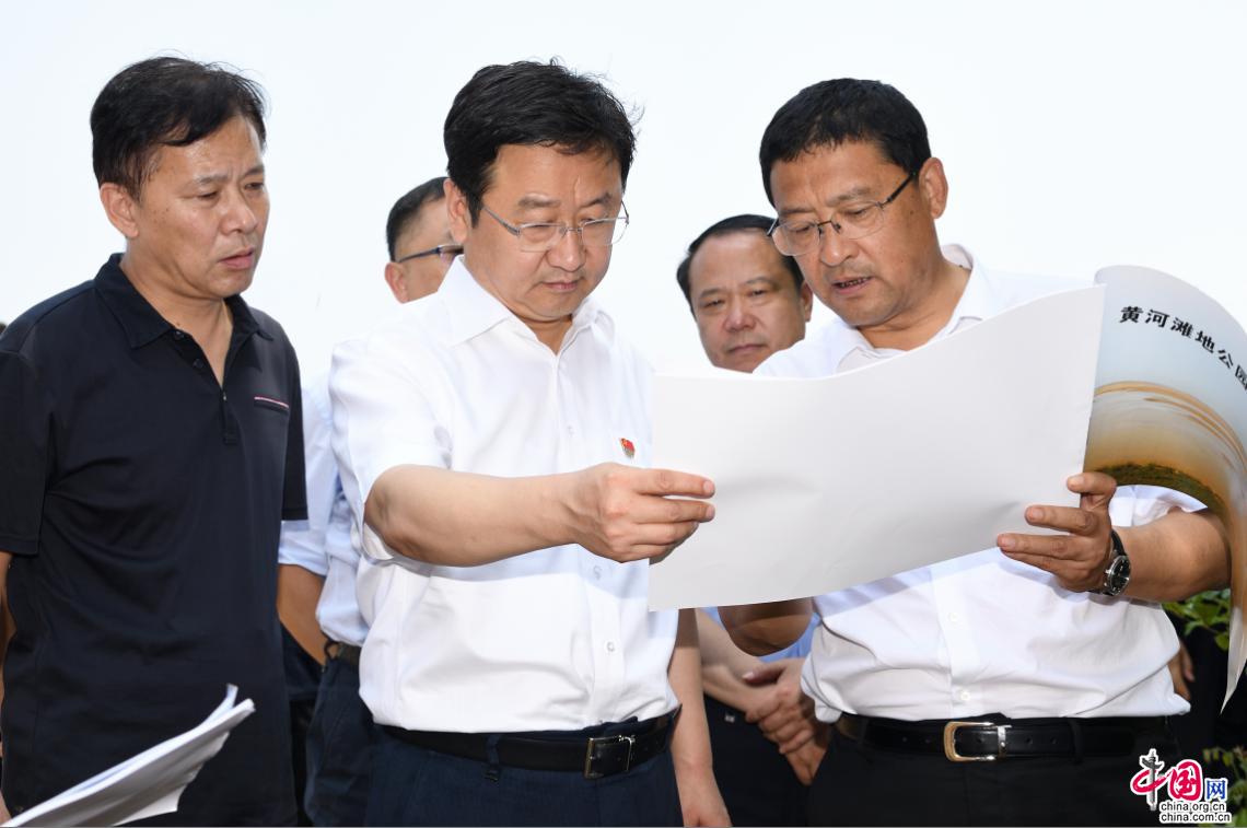 王新偉(左二)調(diào)研黃河突出生態(tài)問題整治工作