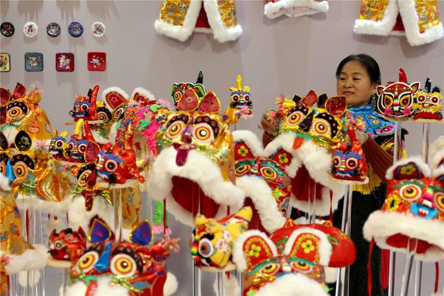 陜西藝人在整理澄城刺繡作品。新華社記者郭緒雷攝