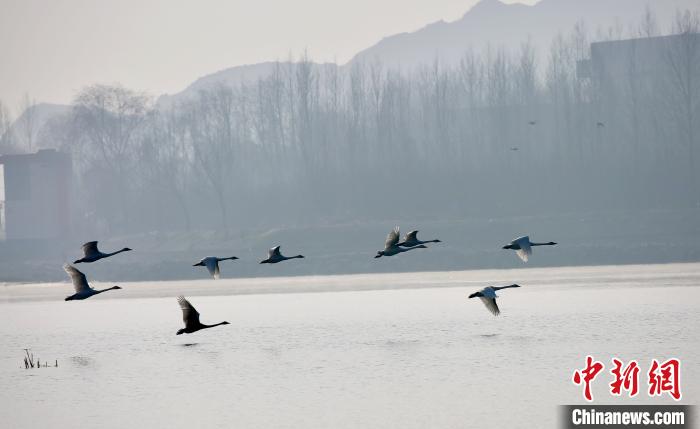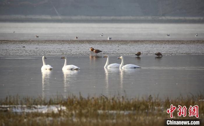 大天鵝飛抵青海黃河岸畔“越冬”