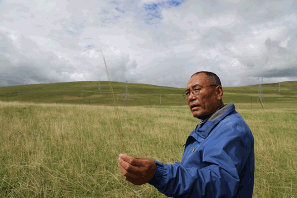 “哪里有黑土灘,哪里就有羅日蓋的身影?!?0年來,羅日蓋走遍了達(dá)日縣33個行政村的溝溝壑壑。哪座山上住著幾戶人家,哪條溝里有多少黑土灘,誰家草場需要種草,他心里裝著一本賬。
