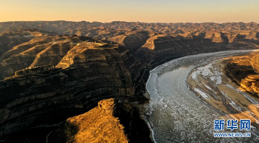 會峰寨“依偎”黃河,成為一道獨特的風(fēng)景(12月15日攝,無人機照片)。會峰寨位于陜西省延川黃河蛇曲國家地質(zhì)公園內(nèi),東臨黃河,四面峭壁嶙峋,僅西北有條小徑與古寨相通,古寨建筑建于明代嘉靖二十五年,曾是軍事防御工事,現(xiàn)已成為當(dāng)?shù)匾惶幹包c。新華社記者陶明攝