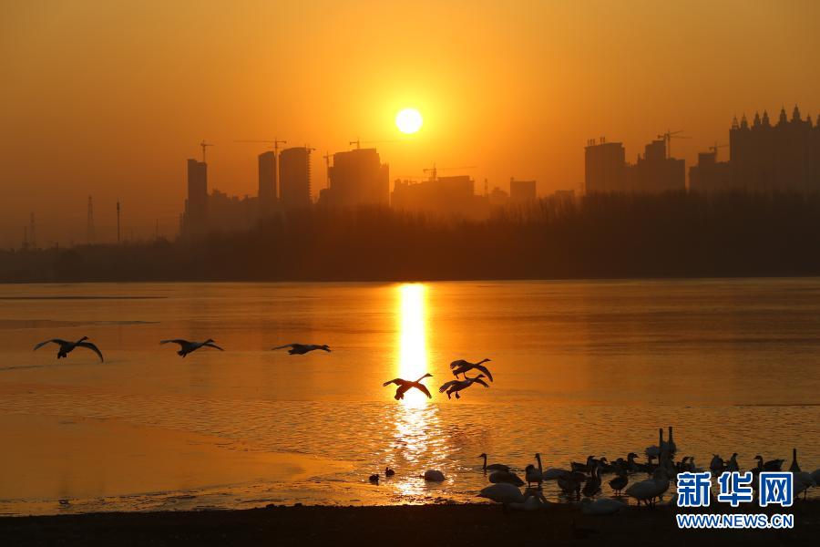 入冬以來,大批白天鵝從西伯利亞遷徙到河南省三門峽市黃河濕地棲息越冬。近年來,三門峽市積極改善黃河三門峽河段生態(tài)環(huán)境,每到冬季,越冬的白天鵝都會“如約而至”。