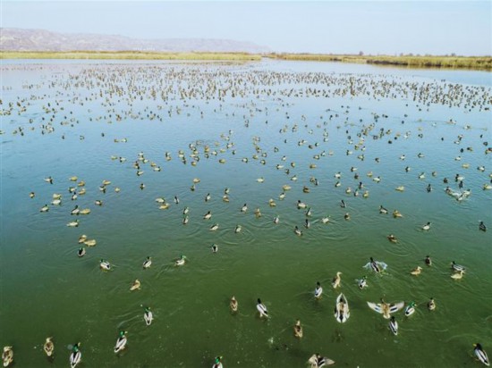 12月20日,在渭南黃河濕地,數(shù)千只綠頭鴨在此棲息越冬。綠頭鴨主要棲息于水生植物豐富的湖泊、河流、池塘、沼澤等水域。近年來,渭南市不斷改善黃河濕地生態(tài)環(huán)境,加大濕地生態(tài)環(huán)境保護(hù)力度,出臺(tái)一系列黃河濕地保護(hù)政策,使?jié)竦氐纳鷳B(tài)資源得到恢復(fù),為野生鳥類提供了棲息場所。本報(bào)記者袁景智攝