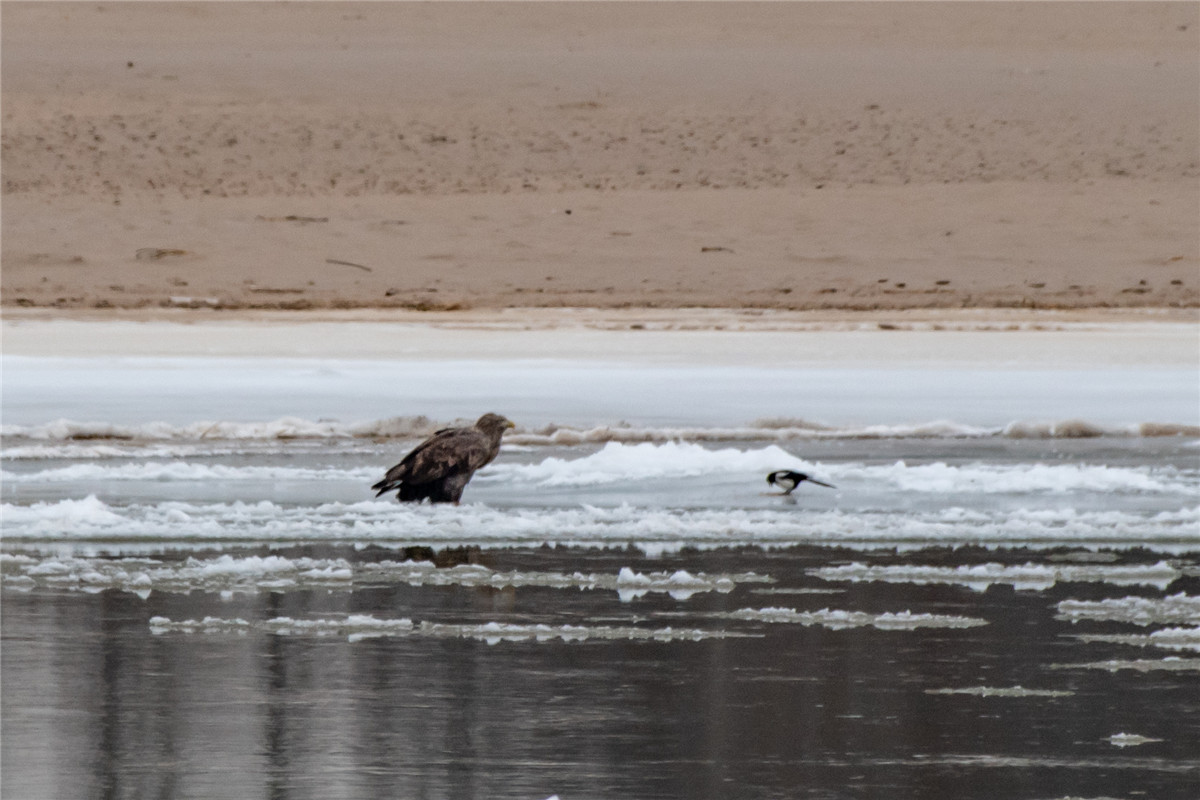 在黃河中覓食的國(guó)家一級(jí)保護(hù)動(dòng)物白尾海雕。寧夏新聞網(wǎng)記者祁瀛濤攝