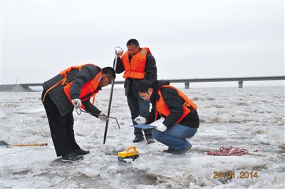 封河期凌情相對穩(wěn)定,巡測的隊員每天早上8點左右出發(fā)巡測,下午3點返回附近的賓館。