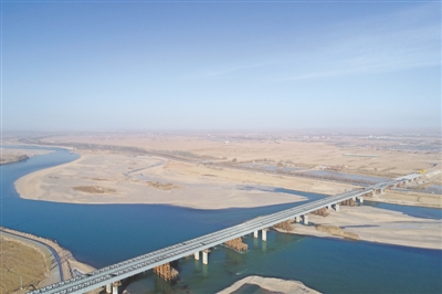 這是寧夏首座采用頂推技術(shù)架設(shè)鋼混組合梁的跨黃河特大橋,比計(jì)劃工期提前一年。記者趙磊攝。