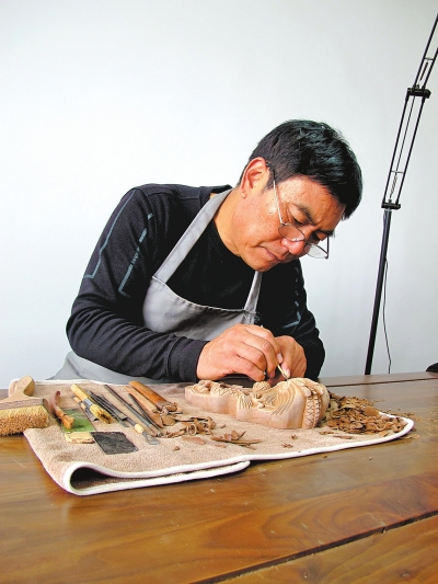 游敏在雕刻圖案