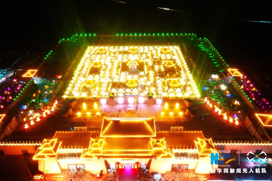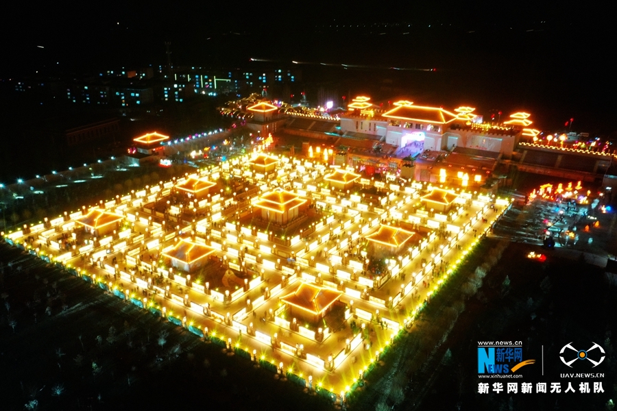 2月23日(農(nóng)歷正月十二)晚上,位于甘肅省張掖市甘州區(qū)堿灘鎮(zhèn)古城村的屋蘭古鎮(zhèn)景區(qū)華燈璀璨,“九曲黃河燈陣”開(kāi)啟“金牛納福‘?!D(zhuǎn)乾坤”啟燈活動(dòng),吸引上萬(wàn)游人觀燈,場(chǎng)面極其壯觀。新華網(wǎng)發(fā)(成林?jǐn)z)