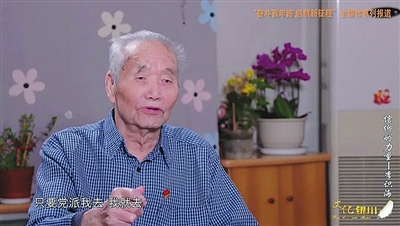95歲高齡的李識(shí)海。視頻截圖②年輕的李識(shí)海(右1)在工程現(xiàn)場。受訪者供圖