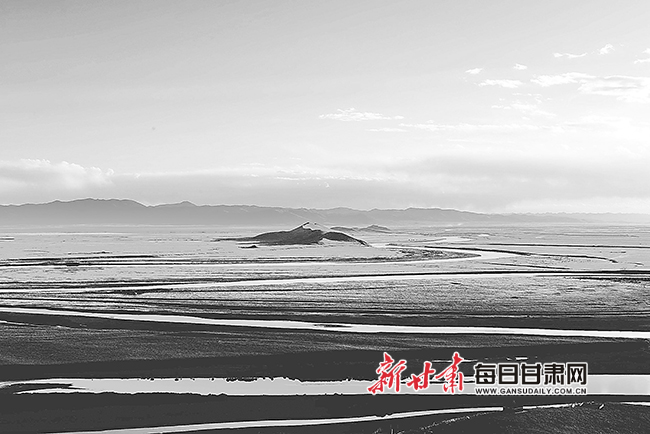 在天地交界處,一段靜謐深邃的水面,錯綜分布在草甸之上,彼此之間似乎并不相連。