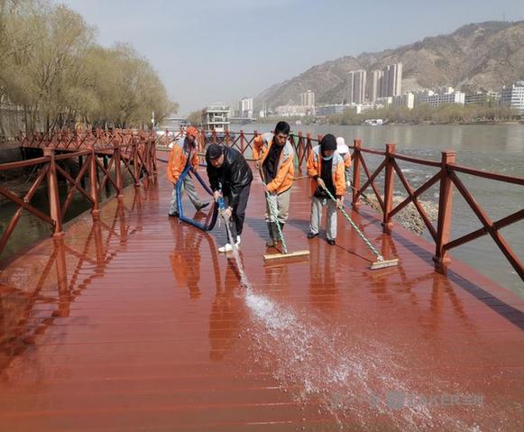 據(jù)了解,為鞏固深化全國文明城市創(chuàng)建成果,推進(jìn)“精準(zhǔn)施策、精細(xì)作業(yè)”創(chuàng)建方法,最大限度降低沙塵天氣對(duì)環(huán)境衛(wèi)生的不良影響,大景區(qū)管委會(huì)對(duì)本次“洗城”行動(dòng)提出了"兩個(gè)必須"的工作要求,即作業(yè)范圍必須實(shí)現(xiàn)大景區(qū)全覆蓋無縫隙,不漏任何角落;清理效果必須符合干凈整潔的標(biāo)準(zhǔn),加強(qiáng)凈化、美化、綠化。在作業(yè)內(nèi)容方面,具體要做到“五清”:清洗路面橋面。采取“人機(jī)結(jié)合”作業(yè)模式,科學(xué)調(diào)度洗掃車、小型沖洗車、綠化灑水車等車輛,嚴(yán)格按照道路清洗保潔作業(yè)要求進(jìn)行洗掃和沖洗,確保無成袋垃圾、無堆積雜物、無積沙積土、無積存污水、無明顯污漬,做到道路見本色、磚縫無浮土。加強(qiáng)全天候機(jī)械和人工配合巡回保潔,對(duì)中山橋、元通橋等橋面進(jìn)行深層次沖洗和清拖,通過帶水作業(yè)徹底清除橋面油脂、陳舊頑漬和積塵覆土。對(duì)黃河母親、中山橋等重點(diǎn)地段,根據(jù)實(shí)際情況增加作業(yè)次數(shù),持續(xù)保持環(huán)境干凈整潔;清掃枯枝落葉。加大對(duì)公園、人行道、草坪、綠化帶內(nèi)枯枝落葉的清掃力度,及時(shí)摟樹葉、攏樹枝,充分利用垃圾壓縮車、轉(zhuǎn)運(yùn)車等機(jī)械設(shè)施逐路收運(yùn)落葉,做到分片清掃、統(tǒng)一收集、密閉清運(yùn);清沖樹木綠籬。用高壓水槍、高壓清洗車、噴霧車等設(shè)備對(duì)大景區(qū)內(nèi)綠植進(jìn)行“洗冠”,開展全方位立體式降塵作業(yè),有效改善植物生長環(huán)境。細(xì)致排查綠化帶衛(wèi)生死角,堅(jiān)持“發(fā)現(xiàn)一處、清理一處”,對(duì)受地形限制無法使用掃帚、夾子等工具的綠化帶,加大保潔人員數(shù)量,人工撿拾紙屑、煙頭、塑料袋等垃圾,裝入袋中集中清運(yùn)。及時(shí)擦拭公園、綠化帶、健身步道塑料大棚上的浮塵泥土,適時(shí)揭棚通風(fēng),確保灌木花卉長勢(shì)良好;清拭公共設(shè)施。人工擦洗漢白玉欄桿、護(hù)欄、果皮箱、休閑座椅、廣告牌、警示標(biāo)語、電箱、共享單車等公共設(shè)施,使用高效清洗劑對(duì)頑漬進(jìn)行噴灑、浸泡、清擦。注重邊角、溝縫、內(nèi)膽、樹池等細(xì)節(jié)位置作業(yè),確保公共設(shè)施得到更細(xì)致清洗維護(hù);清擦公用廁所。對(duì)自管的12個(gè)公廁開展全面清掃消殺,確保公廁墻面、天花板、門窗、隔離板、蹲位整潔,便池?zé)o尿垢,地面無積液,廁坑無污物,室內(nèi)通風(fēng)透光無灰塵。