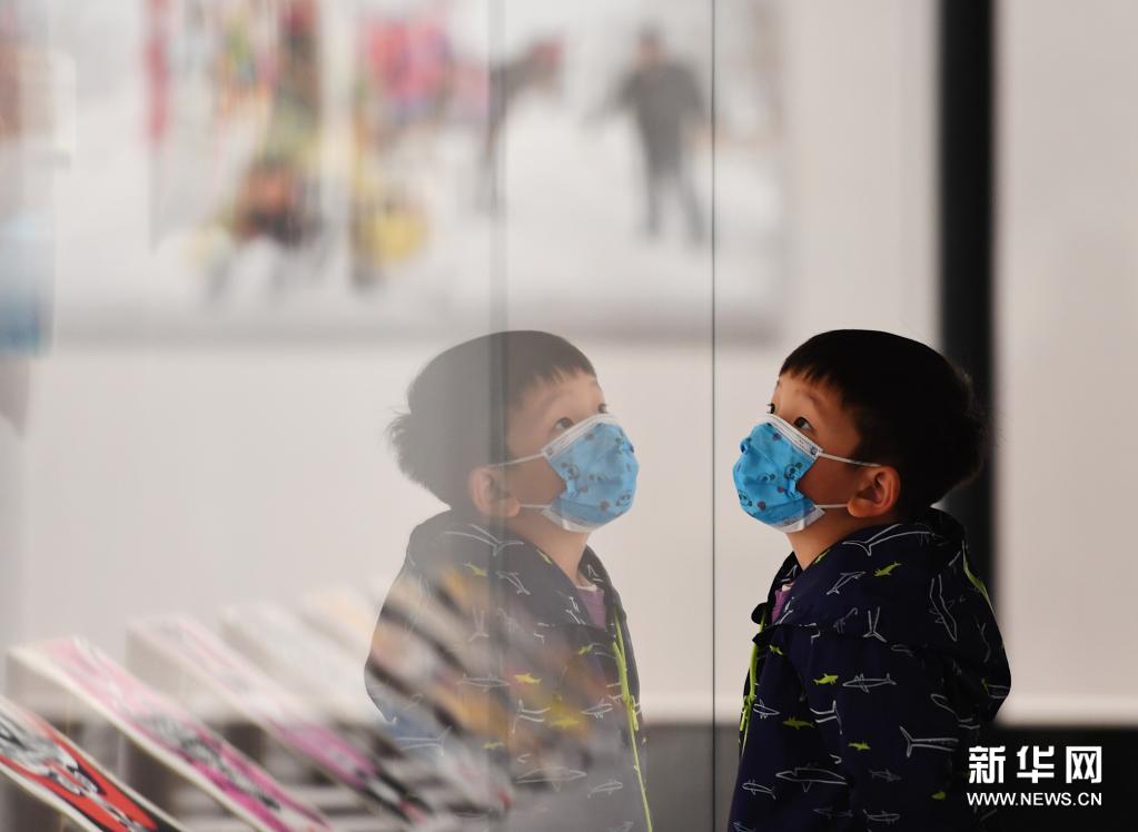 4月18日,小朋友在參觀“新時(shí)代黃河大合唱”大型攝影主題展覽。新華社記者張浩然攝