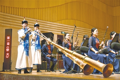 《黃河從草原走過》是一部講述地域風(fēng)情與多元文化整合的民族管弦樂交響音畫,該作品以民族管弦樂的形式,將多首文化內(nèi)涵深邃、風(fēng)格各異的民歌創(chuàng)作成一組能代表本土文化特色的民族器樂曲,用旋律生動(dòng)演繹壯美黃河。