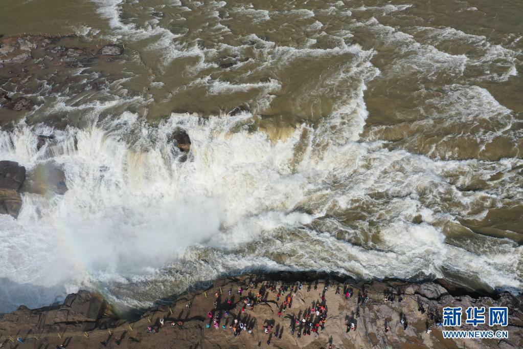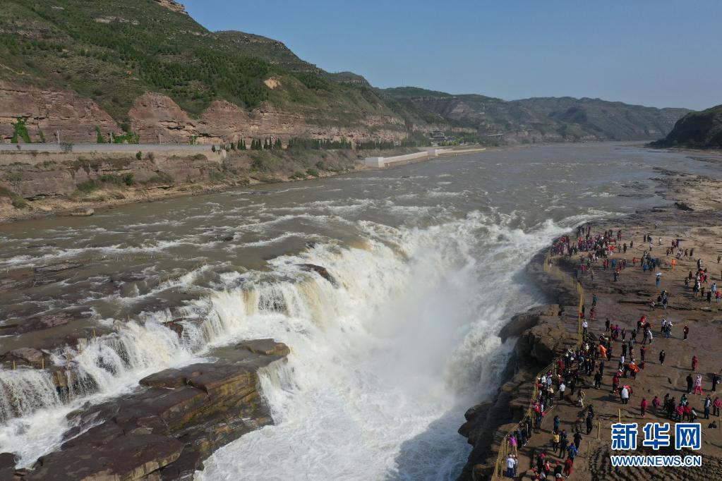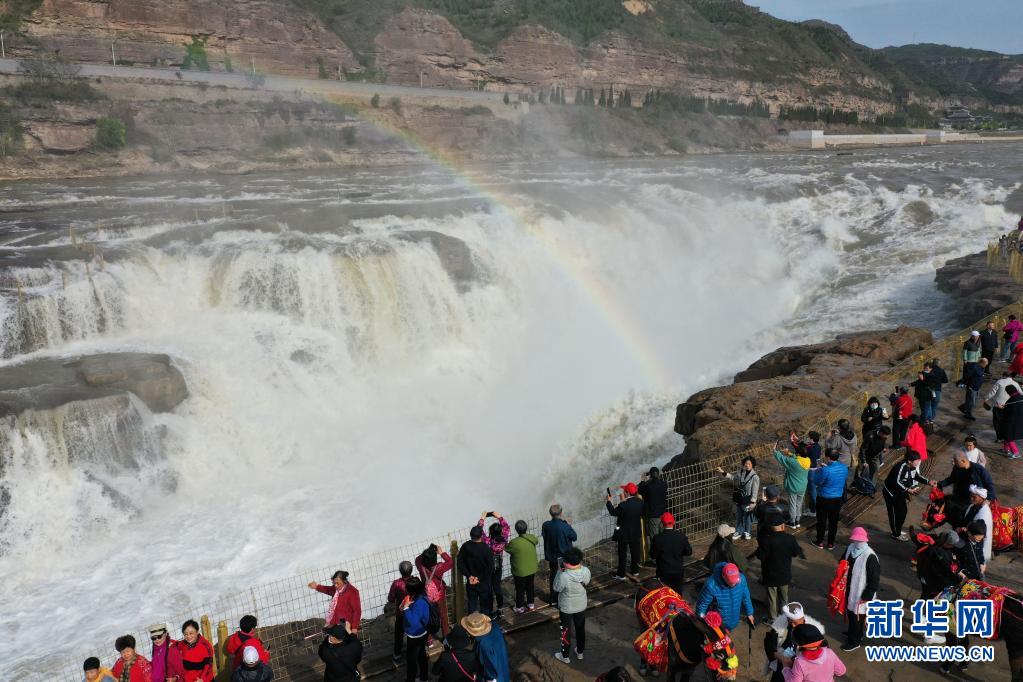 4月28日,游客在山西吉縣黃河壺口瀑布景區(qū)游覽。新華社發(fā)(呂桂明攝)