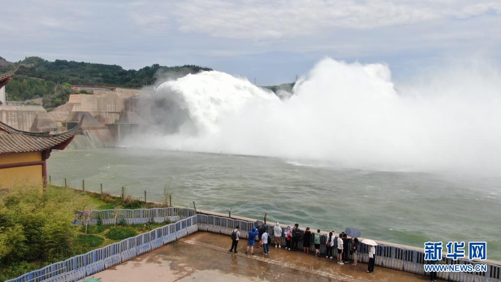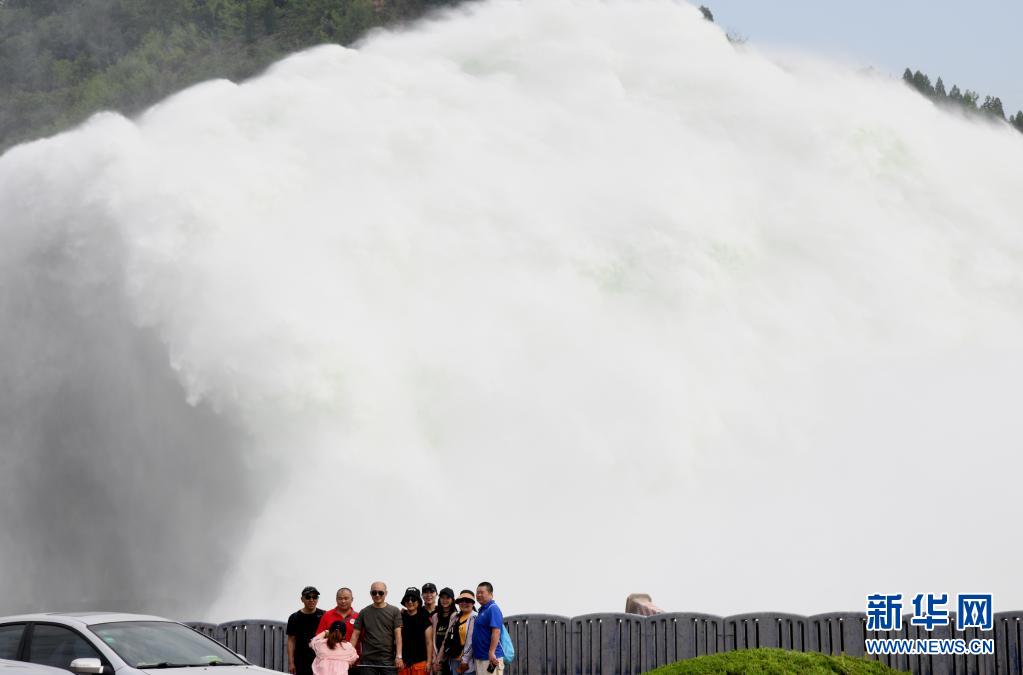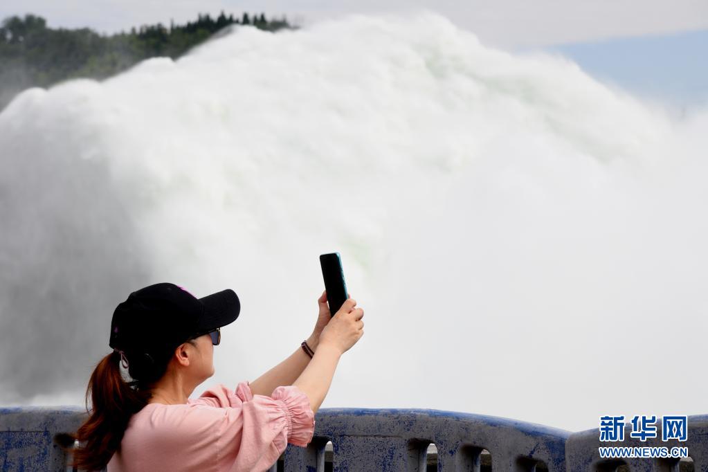 6月19日,游客在黃河小浪底水利樞紐工程出水口觀看調(diào)水調(diào)沙場(chǎng)景。
