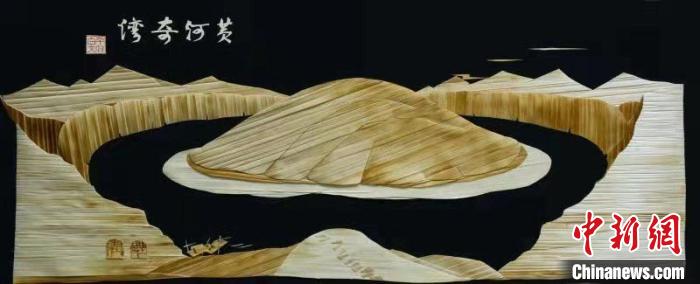 山西省石樓縣,麥稈畫(huà)藝人白文平創(chuàng)作的當(dāng)?shù)刂包c(diǎn)“黃河奇灣”麥稈畫(huà)作品。 受訪者供圖