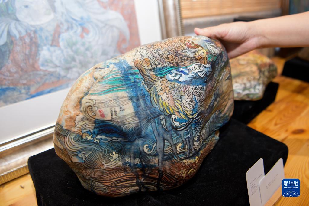 這是8月26日拍攝的魯婷創(chuàng)作的黃河石彩繪作品。新華社記者李志鵬攝