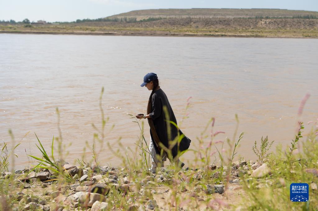 8月26日,在內蒙古烏海市海南區(qū)黃河西行客棧附近的黃河岸邊,魯婷尋找合適的黃河石。新華社記者李志鵬攝