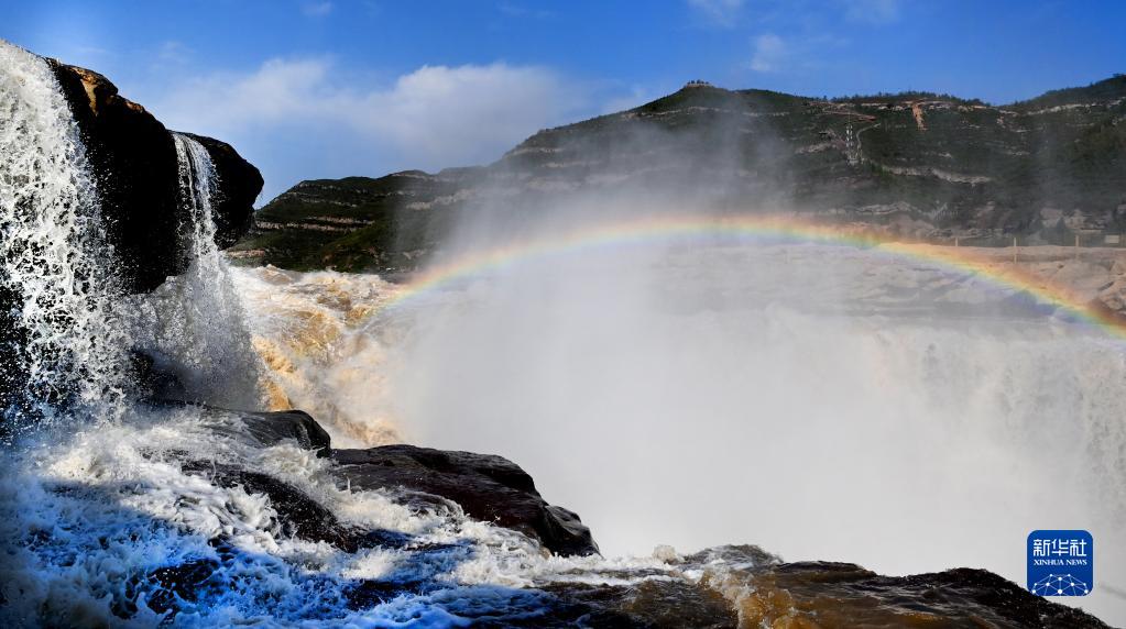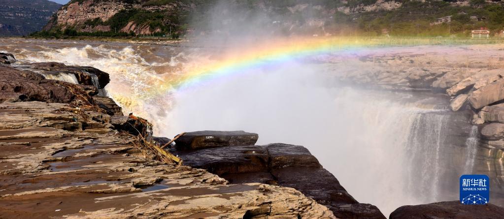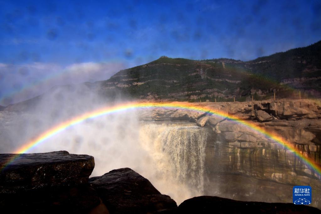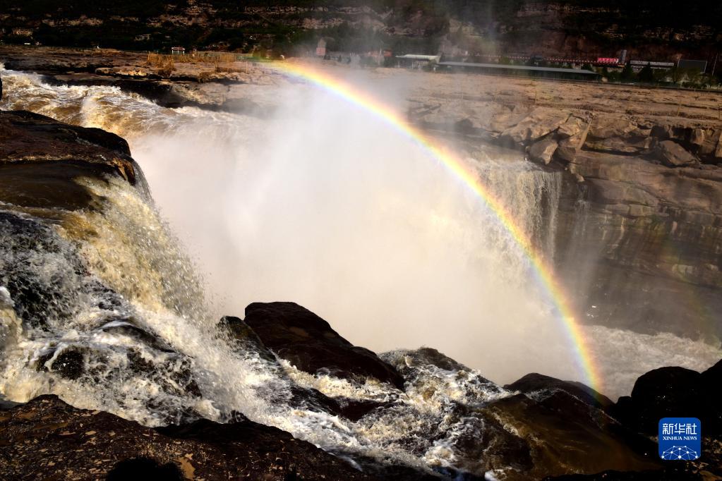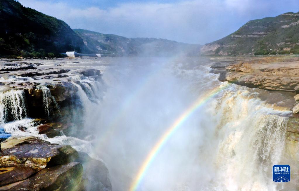 當(dāng)日,雨后初霽的黃河壺口瀑布出現(xiàn)“彩虹飛瀑”景象。