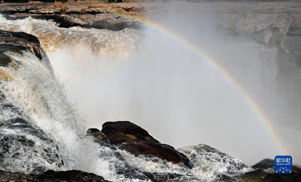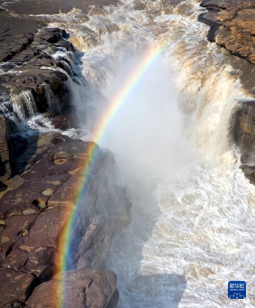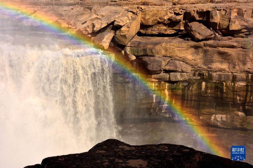 黃河壺口現(xiàn)“彩虹飛瀑”景觀