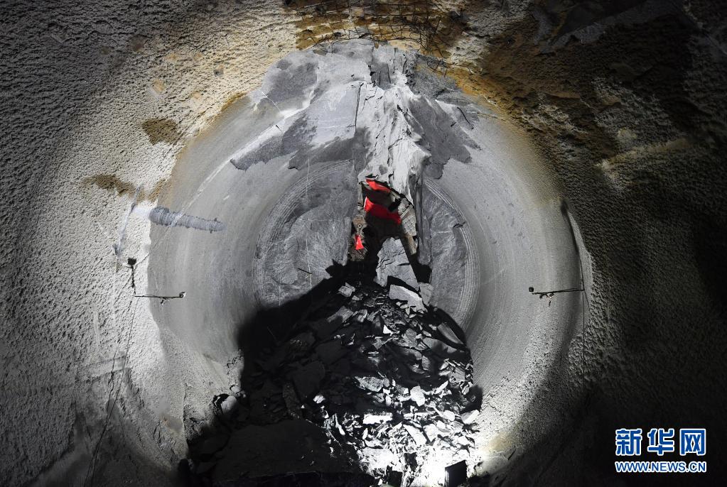 2月22日拍攝的陜西引漢濟(jì)渭工程秦嶺輸水隧洞貫通處。