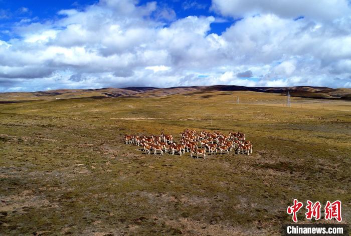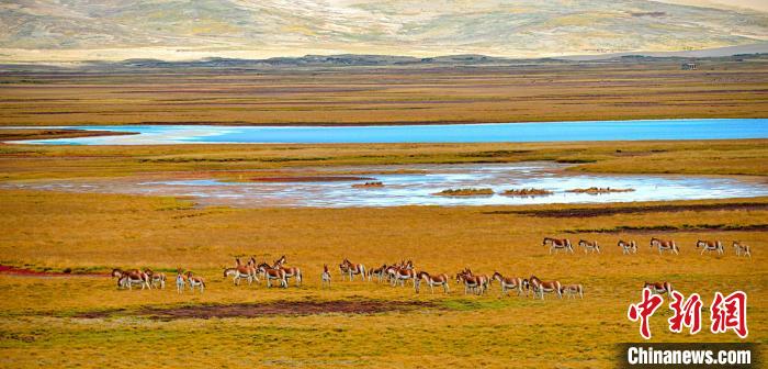 圖為三江源國(guó)家公園黃河源園區(qū)內(nèi)的藏野驢群。瑪多縣委宣傳部供圖