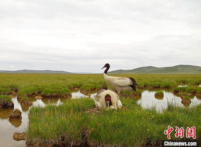 圖為黃河源頭瑪多境內(nèi)濕地的黑鶴?,敹嗫h委宣傳部供圖