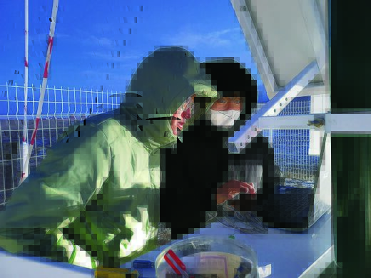 天剛剛亮,索南措裹著厚厚的羽絨服,冒著嚴(yán)寒來到觀測場,將一根塑料管慢慢拉起,不停用手捏著管子。