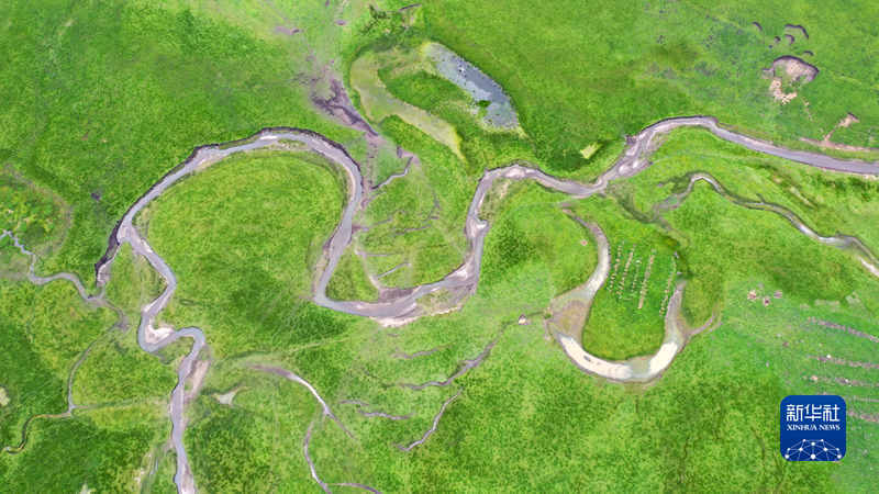 瑪曲縣阿萬倉濕地(無人機(jī)照片)。(新華社記者馬莎攝)